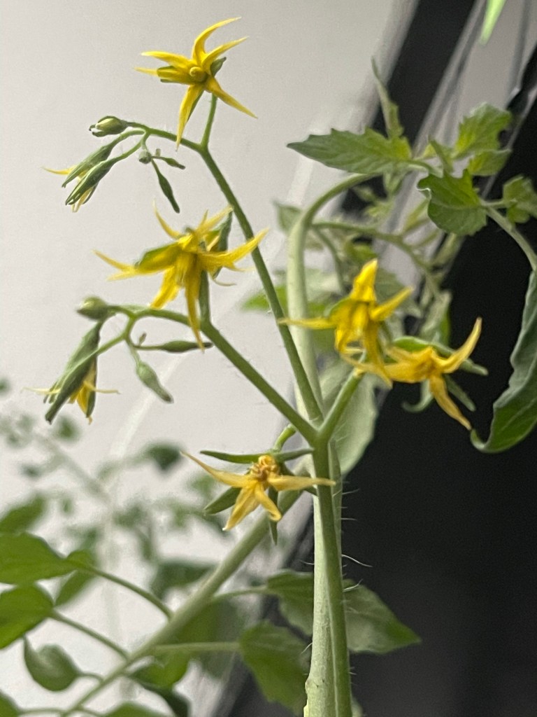 For the cherry tomatoes, the plant was repot from soil and it has thrived after that in nutrients water. Now it’s flowering, I don’t think the veggies AB solution works anymore. the needs for fruiting plants are different from the needs of leafy vegetables.