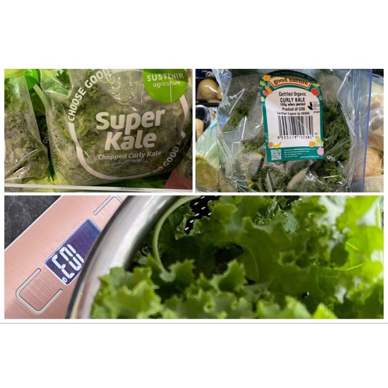 Super kale 4.58 per 100 g, usa organic kale $6.10 per 100 g, , organic home grown kale – priceless