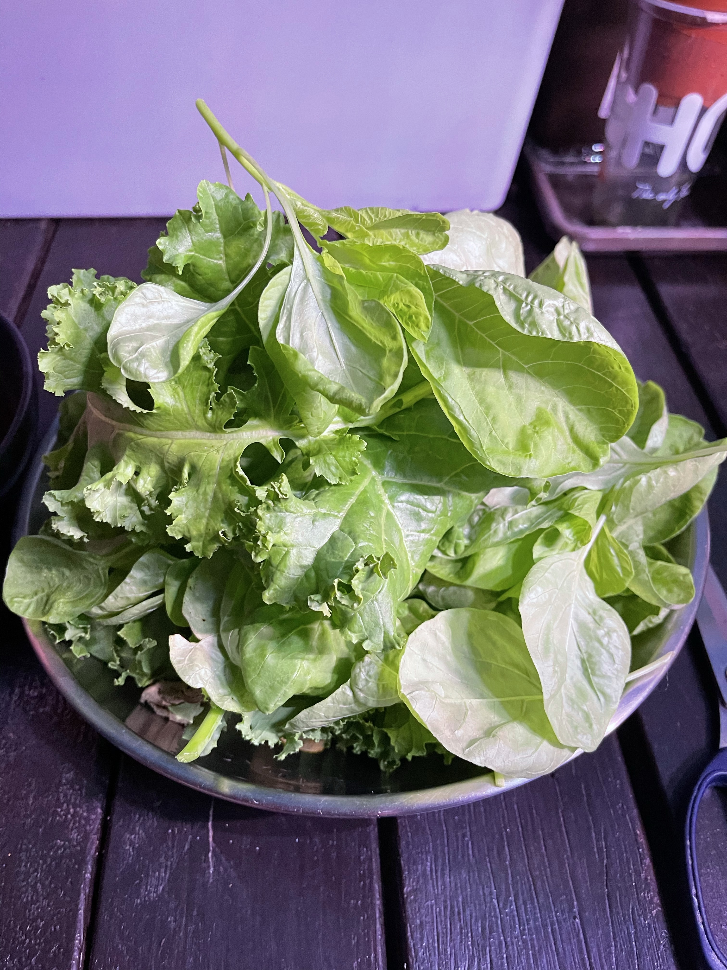 Taiwan white Bayam grows pretty fast. And some of my kale 🥬 grown to have bigger leaves. So I harvested a bunch of them for lunch.