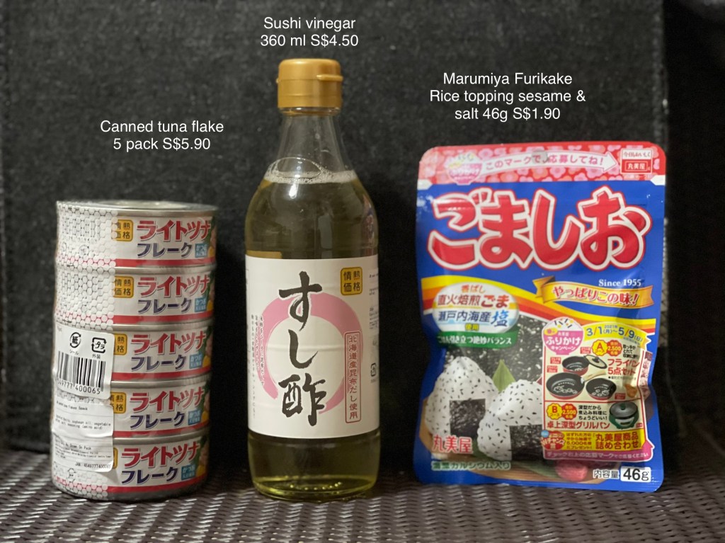 You can prepare your own sushi vinegar Rice Vinegar (60ml or 60g) : Sugar (60g) : Salt (10g) for 300g of raw rice. But I bought from a store 6 Tbsp of Sushi Seasoning for 3 cups of rice. Add and mix Sushi Seasoning without msg to the cooked rice while it is hot. Ratio of rice to sushi-vinagar is 10-15%